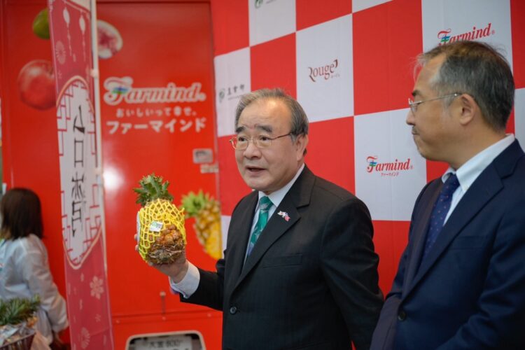 農業部胡忠一政務次長今(4)日在日本東京出席「臺灣祭(台湾フェア)」,活動由農業部攜手日本蔬果通路龍頭「Farmind株式會社」及「Rouge Japan(ルージュジャパン)株式會社」共同主辦,在東京有樂町交通會館前廣場,以充滿活力的「露天餐車」形式,將臺灣優質的金鑽鳳梨、產銷履歷米、經典品牌香腸及精緻花卉等農產品形象,深深植入日本消費者心中與日常生活。