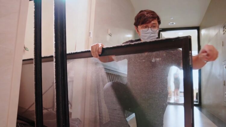 艾爾沃工程師安裝作業實錄,展現職人安裝工法。圖/艾爾沃靜電防霾紗窗