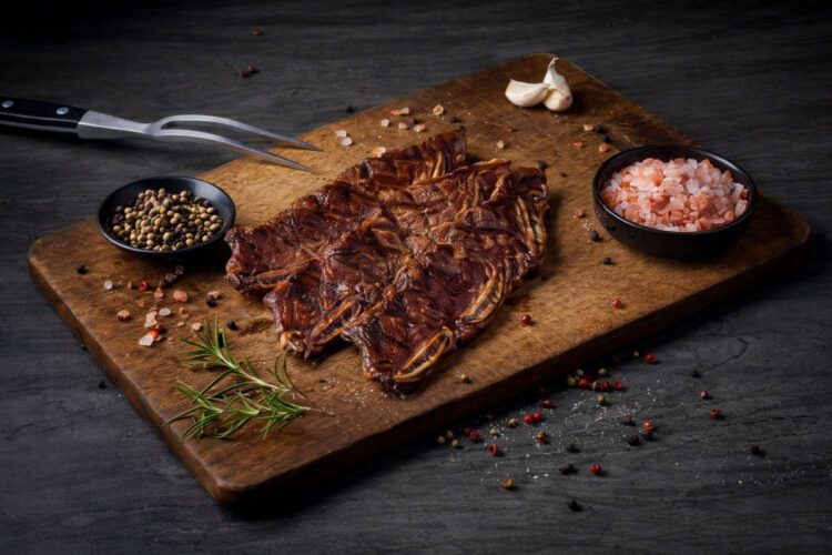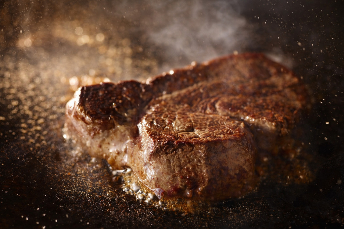 在大功牛排眾多餐點中,最受饕客歡迎的莫過於主打的「冷藏熟成牛排」。這道料理採用0至-1°C冷藏熟成技術,將牛肉在特定時間內熟成,使其蛋白質自然分解、纖維變得柔軟,進而提升風味與口感。隨後經由高溫炙燒封住肉汁,達到外層香氣四溢、內裡粉嫩多汁的雙重口感。