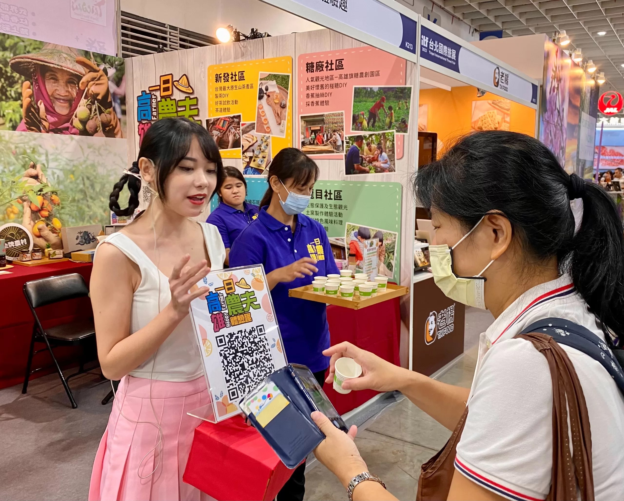 近年來農村採果及深度體驗一直為全年齡層的旅遊主軸,高雄市政府農業局此次主打六龜新發社區榮獲ITQI 3星的山茶的文化及製茶體驗、旗山糖廠社區生態遊程、食農體驗及古早味的手作椪糖DIY、龍目社區的鳳梨採果文化深度旅遊、旗山南勝社區的荔枝木餐具DIY、永安新港社區的漁村文化及石斑魚料理,現場也能品嚐到同樣於本年度ITQI獲獎的新港社區魚餅及蜂巢氏蜂蜜飲,現場的民眾諮詢相當踴躍,也吸引許多旅遊相關業者洽談農村遊程合作方案,邀請台北的朋友深度了解高雄農村文化及農村旅遊。