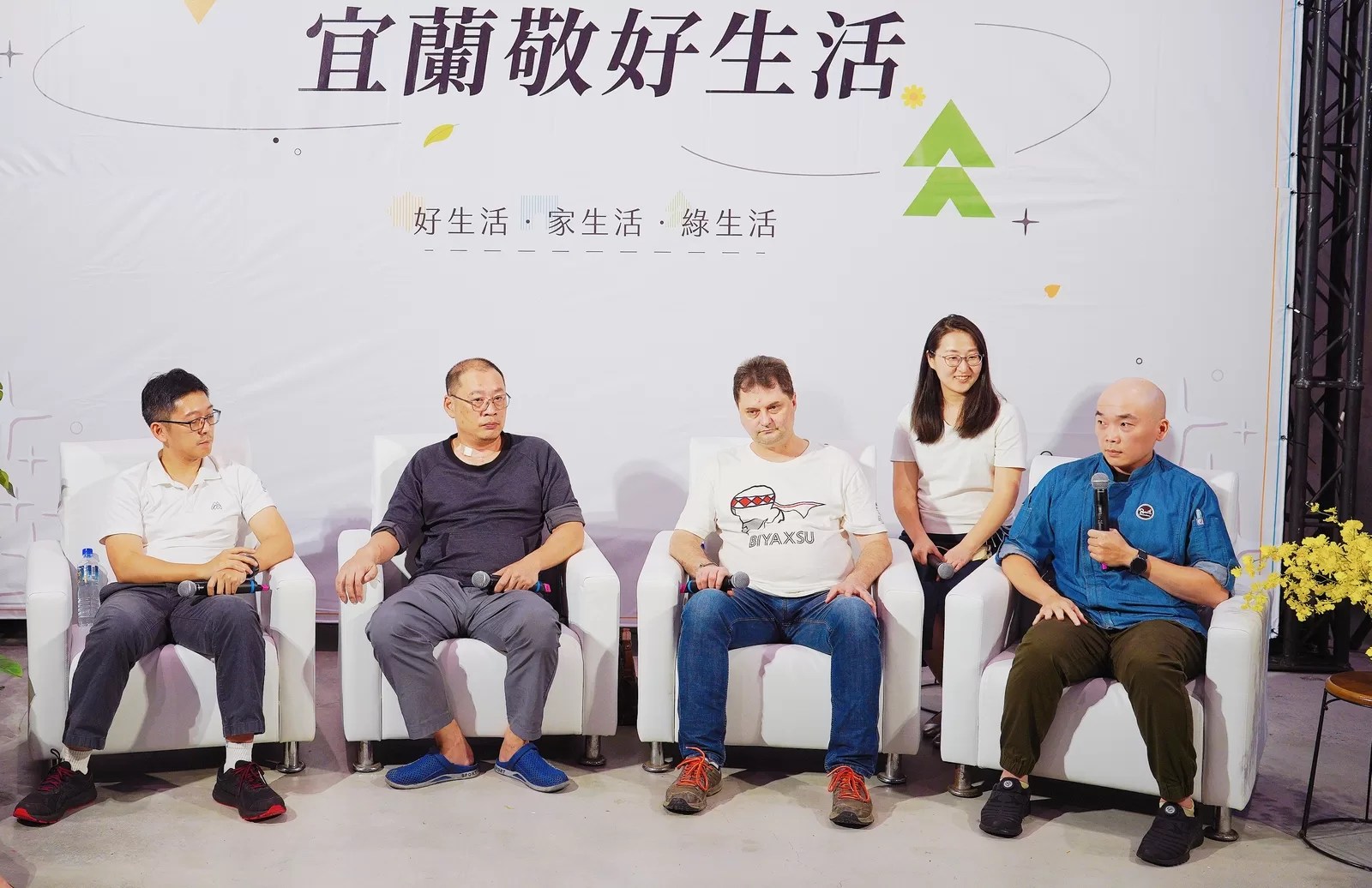 ▲右起Rebirth chocolate黃仲磊巧克力師、米薩維奇陶藝工作坊Brian Misavage主理人、宜紅茶苑黃子誠苑長、毓琇私房醬鄒政宏副總,透過各自品牌交流,創造家人之間的溫度連結,分享舒適家居環境的經營心路。圖/宜蘭縣政府文化局提供