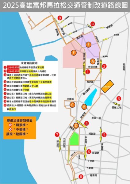 【今傳媒/記者李祖東報導】由高雄市政府運動發展局主辦、富邦人壽冠名贊助的「2025高雄富邦馬拉松」,今年以「Run to Love. Love to Run 越跑越愛 越愛跑」為口號,賽事將於1月11、12兩日(本週六、日)盛大舉行,為確保賽事順利與道路安全,賽事期間將在大會會場及賽道實施交通管制,請民眾改道行駛;活動也將邀集城市啦啦隊來賽道旁為選手們加油打氣,一起參與這場路跑盛會。