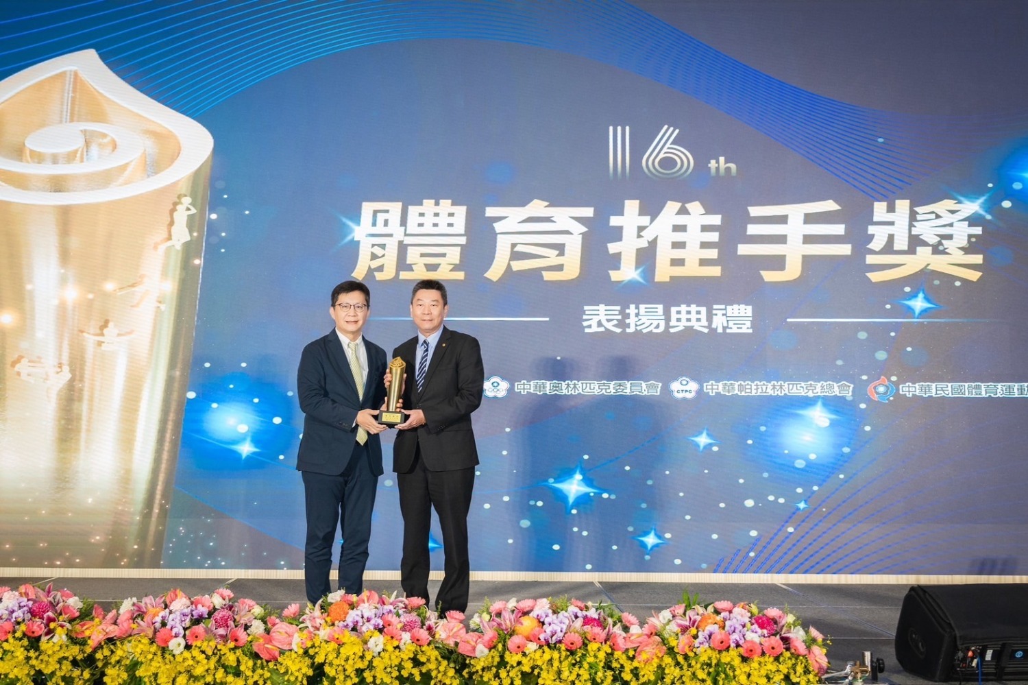 「體育推手獎」今(29)日在台北美福大飯店舉行第16屆表揚典禮,長榮航空榮獲雙料肯定,除再度蟬聯教育部體育署「體育推手獎」贊助類《金質獎》,同時也榮獲《長期贊助獎》,是國內唯一獲獎的航空公司。長榮航空由陳耀銘發言人代表領獎,並由教育部張廖萬堅政務次長頒獎,表揚長榮航空多年來關注台灣體壇發展,贊助各大賽事及台灣好手,讓台灣得以在國際發光發熱。