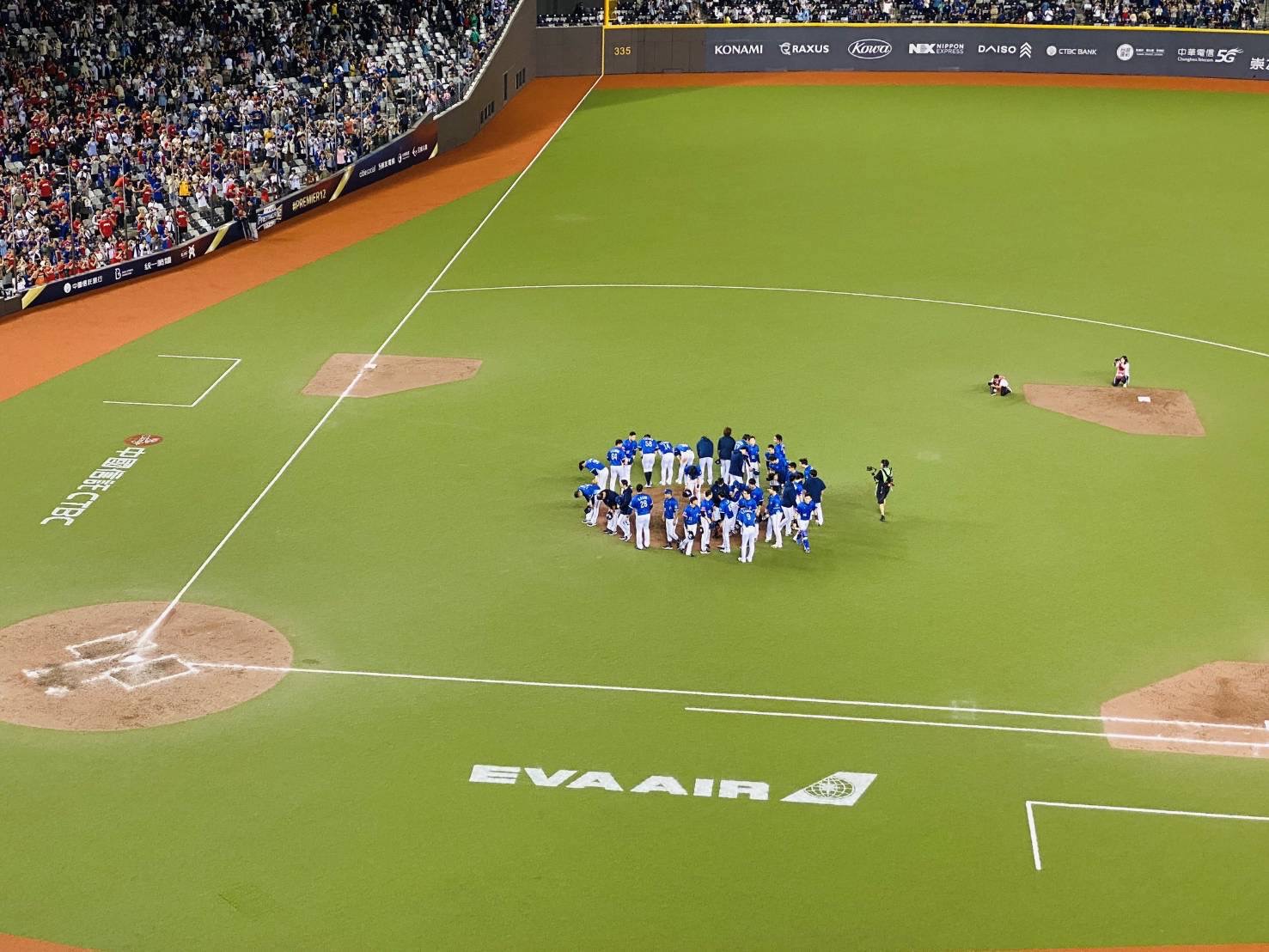 本屆P12在台北大巨蛋預賽時,長榮航空派出空服員協助拍攝賽前「安全須知影片」外,也在一壘側草皮展現LOGO彩繪,是台北大巨蛋首次人工草皮彩繪,亮眼形象驚豔全場,陪伴中華隊征戰全場,力拼好成績。
