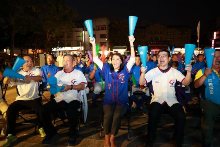 ▲縣長許淑華、副縣長王瑞德和球迷一起為中華隊加油。(圖/南投縣政府提供)