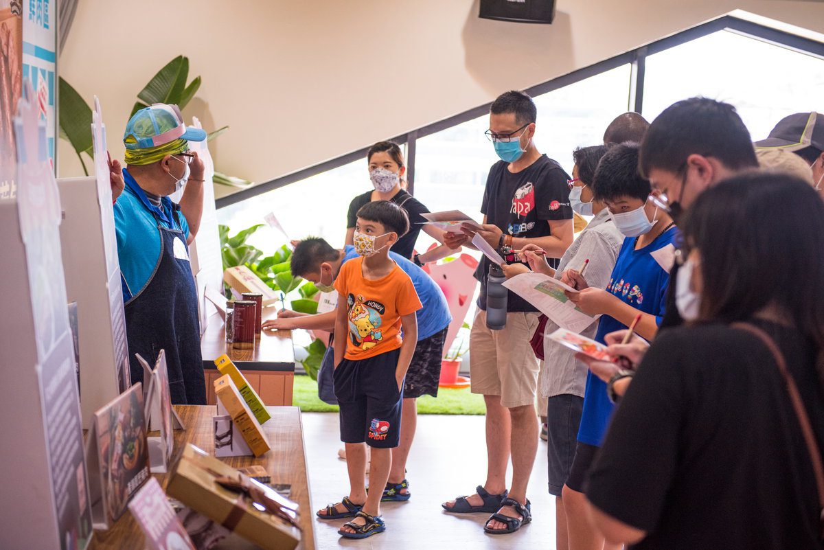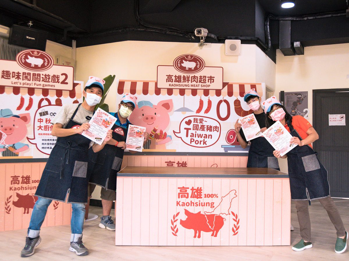 現場搭配展板介紹高雄在地品牌畜禽產品,包括田寮區農會田那提鹹豬肉及產銷履歷豬肉、仁允牧場肉品及純肉鬆、寶島第一味酒釀玉荷包香腸、得意中華畜產加工料理包、石安牧場動福蛋、元榆牧場衝浪雞、仁福牧場喜哈蛋、水泉農場萬步雞、高雄市新生活生乳運銷合作社新生活純鮮乳品、久益牧場久益鮮乳、水流莊牧場鮮羊乳系列產品等,誘人國產豬肉好料香氣四溢伴隨闖關互動,讓大家在玩樂中也了解生產農民的理念及用心經營。