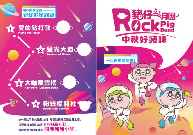 為透過畜產食農體驗推廣鮮享在地,讓大家在歡樂中認識高雄優質畜禽產品,農業局特辦理「中秋好豬味」豬仔月團追星闖關活動,歡迎民眾齊聚場區搖滾粉紅月球派對,追星路線動茲動,先來一首愛的豬打歌,應援口號大聲喊,展現臂力測準度;走上星光大道搶眼球,搞怪、帥美任你挑,紅毯第一會是誰?大咖風雲榜hito由你選,十一選三粉絲力爆發挺到底;美食巨星豬仔月團相見歡,鐵粉享福利香酥國產豬豬小吃嘗鮮趣;本週六日兩天每天均有3場次闖關體驗,現場報名額滿為止,還有吸睛畜產主題意象區歡迎合影。