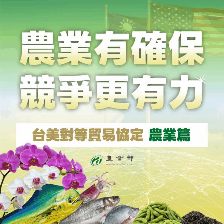 農業部表示,台美協定談判結果有助於台灣農產品擴大銷美,並提供農業升級轉型,讓消費者更認同國產農產品的機會。為掌握台美協定對農業帶來的新契機,行政院已同意農業部擴編韌性特別預算,從確保競爭優勢、擴大外銷根基、鞏固產業韌性等三大面向,全方位支持農業升級轉型,輔導農民與業者強化體質及布局全球,並針對可能有受影響之虞的農產品,提出完整的產業支持措施,以維護農民權益。