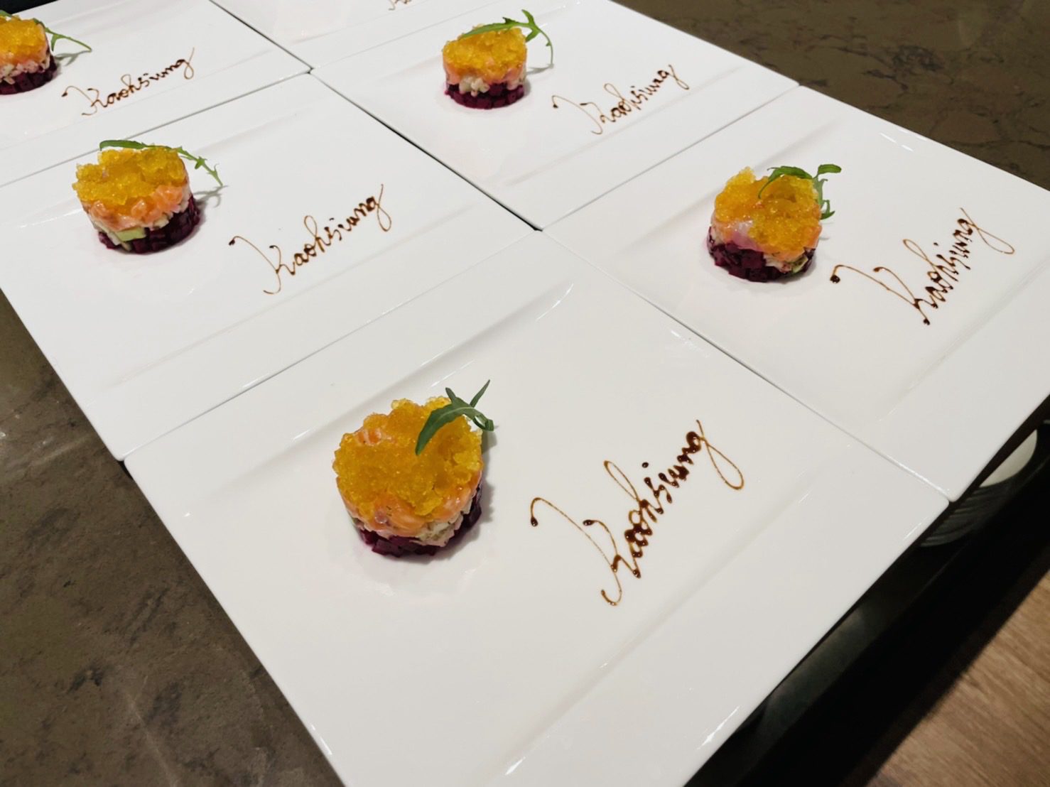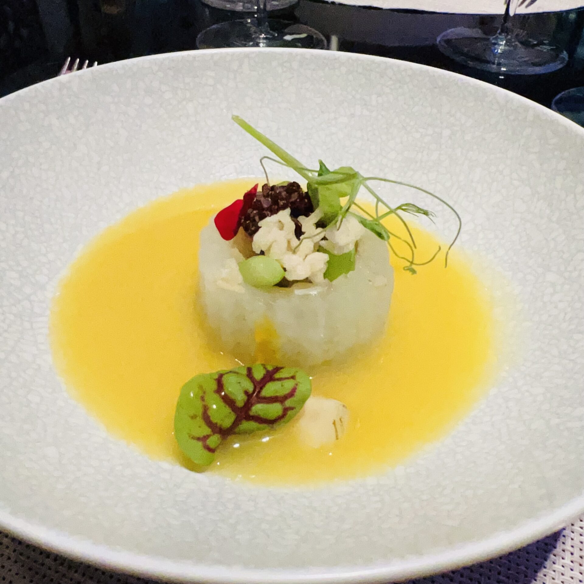 本次餐會菜單由3位主廚聯手發揮巧思設計上菜,從冷前菜、湯品、主菜到甜點飲料,可說是集結高雄山海滋味,除了大家耳熟能詳的大樹鳳梨、內門檸檬、路竹番茄、美濃毛豆和杉林南瓜外,還加入海鮮美味像是高雄彌陀生態蝦、烏魚子、永安午仔魚以及來自六龜的哈娜谷原生山茶。七道料理濃縮高雄最真實的風土,用在地食材體現環境永續的目標。