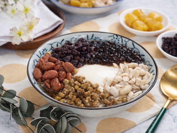 A: 菜單配料豐富且具手作感,包含每日現煮的紅豆、綠豆、大豆、薏仁、鳳梨、杏仁與愛玉。口感控則可選擇自家手作的小湯圓、芋圓、地瓜圓及三色湯圓,或搭配具備嚼勁的雙 Q 圓、粉圓與仙草奶凍,創造多層次的古早味體驗。