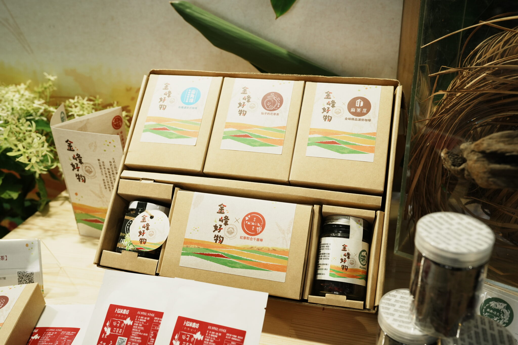 金峰鄉在地農產品牌化成果「金峰好物」亮相,結合紅藜、洛神等特色作物,展現農業六級化發展成果。