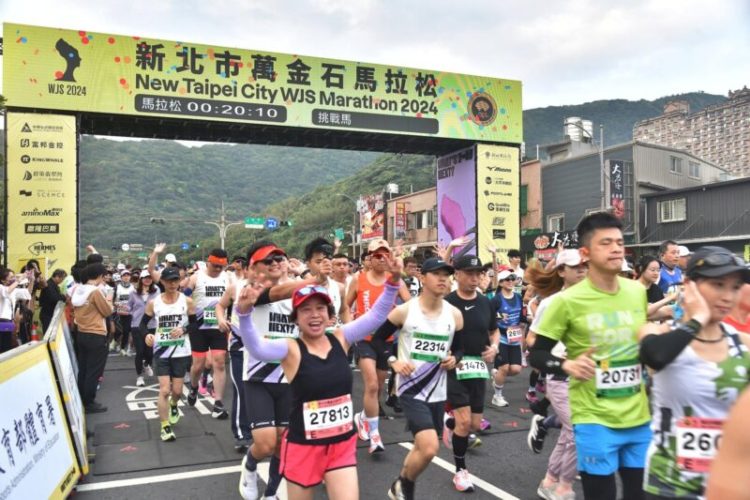 2024新北市萬金石馬拉松今年邁入第二十二屆,市長侯友宜昨(17)早與中華民國田徑協會理事長葉政彥等人為1萬1,000名跑者鳴笛起跑,鼓勵參賽選手都能超越上一次的自己,開創新紀錄。最終由周庭印奪下全馬國內男子組冠軍,全馬國內女子組由謝千鶴拿下。