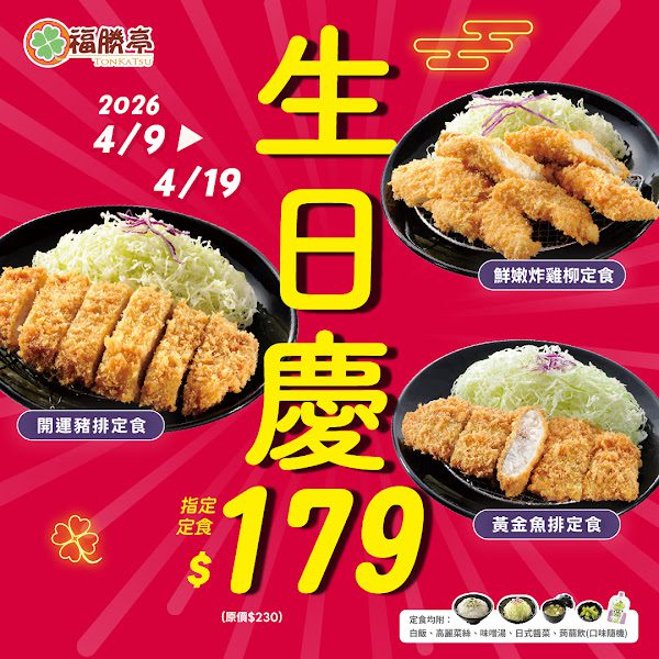 福勝亭同步推出必勝精選優惠-憑圖可享「開運豬排定食」原價230元 特惠價200元,13項憑圖優惠,高CP值回饋消費者。活動期間凡購買指定套餐,即可參加「必勝開運刮刮卡」抽獎,最大獎為Dyson吸塵器,另有Dyson吹風機、AirPods 4及福勝亭貴賓券等多項好禮。品牌表示,透過「豬排」象徵金榜題名、「炸物」寓意好運加持,希望在備考壓力中提供一份療癒與鼓勵。