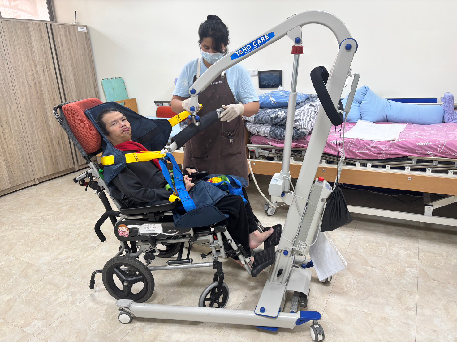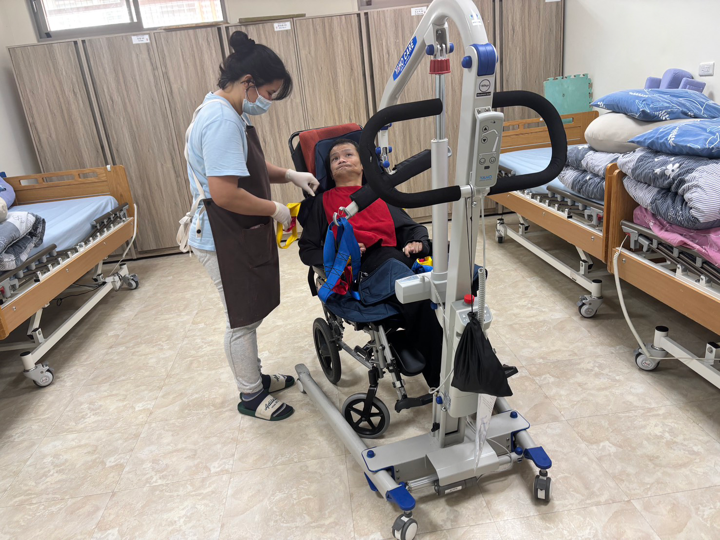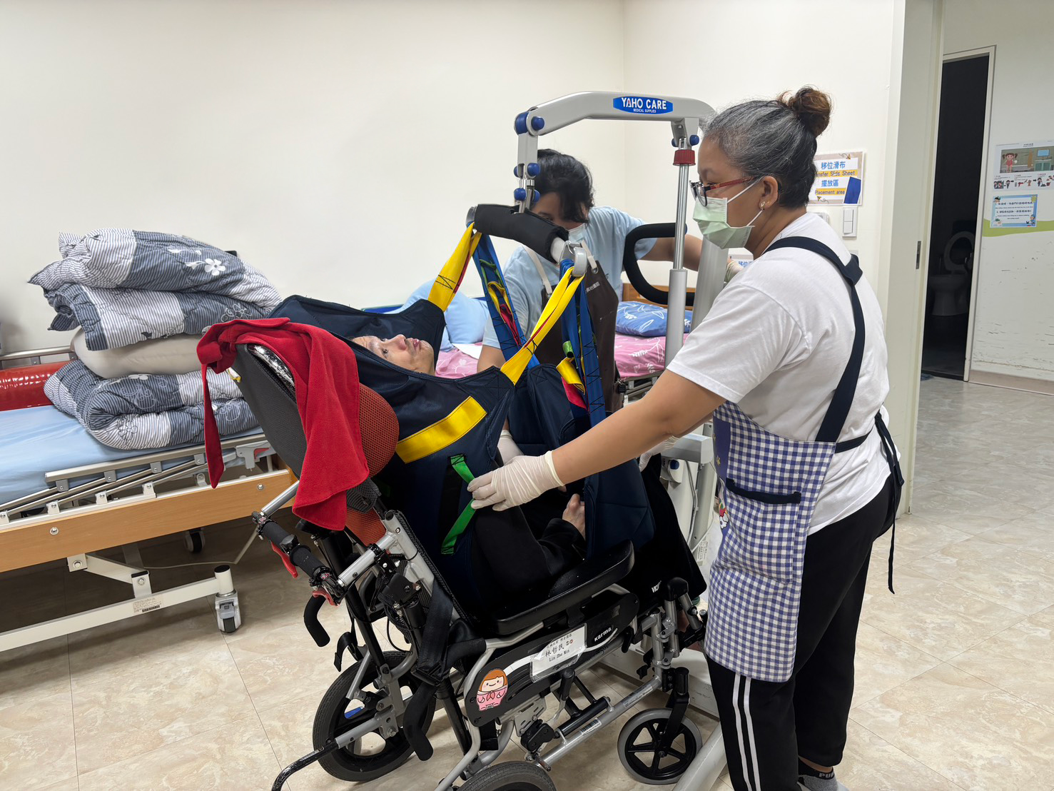 因此,基金會並非只是引進移位設備,而是從照顧流程與觀念著手,重新檢視翻身、移位、如廁與日常活動等環節,讓照顧動作本身符合人因工程,降低不必要的身體負荷,讓照顧成為一項可以長期承擔的專業工作,而非消耗體力的勞動。