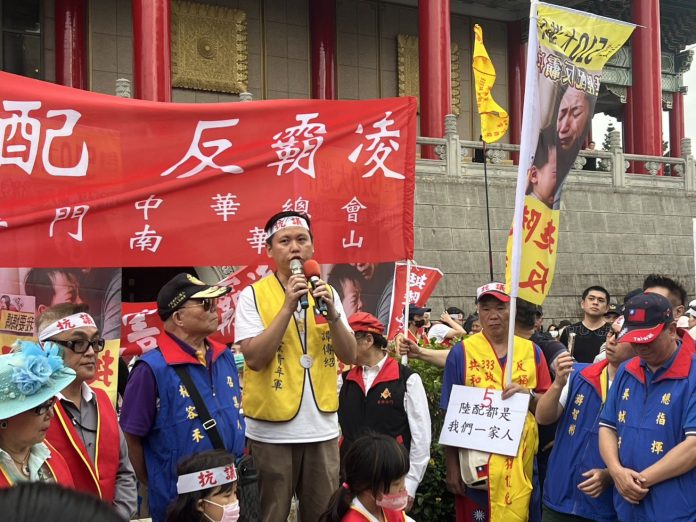 由更生黨主席吳軾子發起、新黨青年軍聲援的「挺陸配大遊行」,今(10)日於中正紀念堂登場,訴求調整現有政策,允許通過具結聲明替代要求大陸籍人士提交原戶籍喪失證明檔。遊行隊伍下午3時出發,行經信義路、林森南路、濟南路,在立法院群賢樓前進行簡短演講、並喊口號。