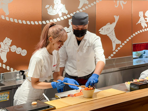 活動過程更是驚喜連連,河智媛化身壽司師傅,即興模仿「握壽司」手勢,逗趣又專業的表演讓粉絲笑到停不下來;廉世彬則現場秀中文介紹菜色,笑稱:「想讓粉絲吃到最美味的海鮮!」禹洙漢則一絲不苟地盯著擺盤,被師傅們盛讚為「壽司界完美主義者」。三人魅力全開、創意滿分,現場粉絲尖叫連連,氣氛熱到像小型演唱會!