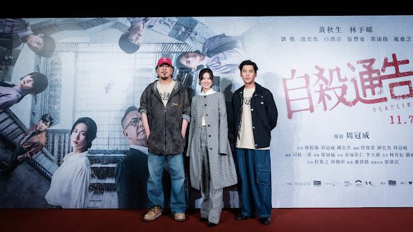 【WoWoNews】《幻愛》金馬得主周冠威執導全新懸疑校園電影《自殺通告》將在11月7日全台上映,揭成績至上的驚悚真相。今(5日)晚舉辦盛大首映,導演周冠威、監製林配儀率影帝黃秋生、林予晞、黃迪揚、劉敬、白潤音、張豐豪、邵奕玫、戴雅芝全體師生齊聚亮相,星光熠熠。《自殺通告》前後經歷8年終於要在台灣和觀眾見面,雖片名敏感聳動,但周冠威堅持不改,他表示:「這片名和劇情是最貼切的,而且我始終認為談論自殺不是禁忌,加上電影主要還是想探討制度,希望大家看完可以獲得力量。」