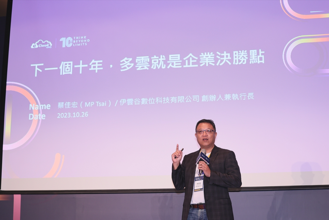 伊雲谷執行長暨創辦人蔡佳宏於開場時破題「下一個十年,多雲就是企業決勝點」,回首過去十年全球雲端產業,伊雲谷發展緊隨全球雲端產業脈動,從單雲到一站式提供四大公有雲,並早於 2018 年洞察市場需求,成立數據團隊協助大型客戶藉數據開啟數位轉型。伊雲谷以技術專業建立國際大廠夥伴和全球客戶信任,以信任持續壯大生態系。今年伊雲谷開啟澳洲新據點,未來 10 年,伊雲谷將持續整合核心系統服務、深耕專業能力並持續區域擴張,以全球100個城市,2萬名員工為使命,強化全球專業團隊,以更快速更便捷的方式於世界各地服務我們的企業客戶。