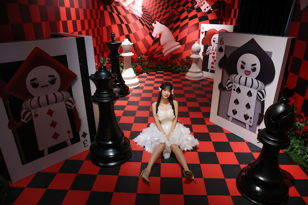 (圖片提供:詠威互動科技/楊若歆受邀愛麗絲拯救仙境光影互動展一日店長)