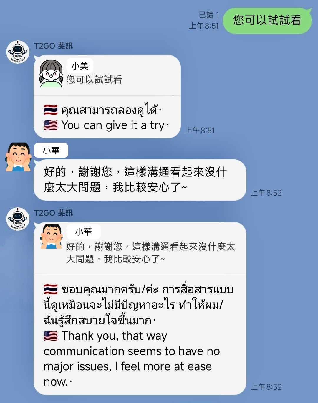 民眾可透過加入官方 LINE 帳號 @T2GO (https://line.me/R/ti/p/@T2GO) 進行體驗,了解翻譯機器人在跨語溝通中的應用可能。