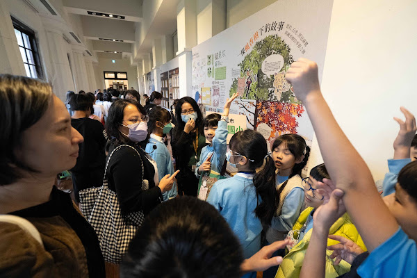另一展區「標本裡的奇思異想」則呈現北市國語實小、東門國小、北市大附小、石牌國小、古亭國小、桃園長庚國小、苗栗蕉埔國小、宜蘭武塔國小及樹國子共學團等班級的校園書寫成果。學生在博物館實地觀察後,透過修辭、聯想與創意策展方式描繪生物故事,從楓香樹下的季節生命,到標本櫃裡的夜語,展現出跨世代自然書寫的豐富想像力與對生命的細緻觀察。展區可見童趣筆觸所帶出的自然回應,也看見年輕世代如何理解物種、生態與土地之間的連結。