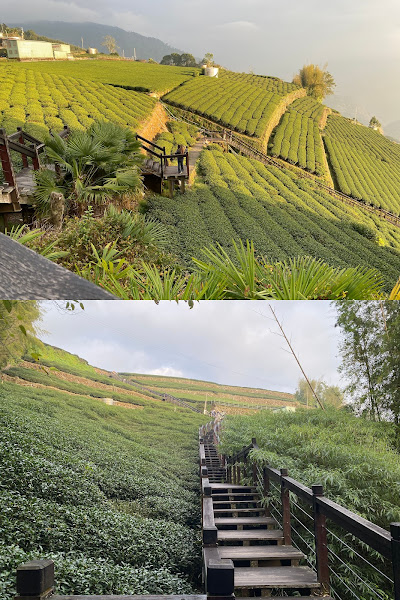 午後漫步在「霞之道」步道,步道沿著山稜與茶園邊緣鋪展,是一條與高山茶園相伴的靜謐小徑,天氣晴朗時可遠眺層層山巒,置身在茶山中,在霧氣、茶香與山林氣息中,感受阿里山高山茶鄉獨有的寧靜與詩意!