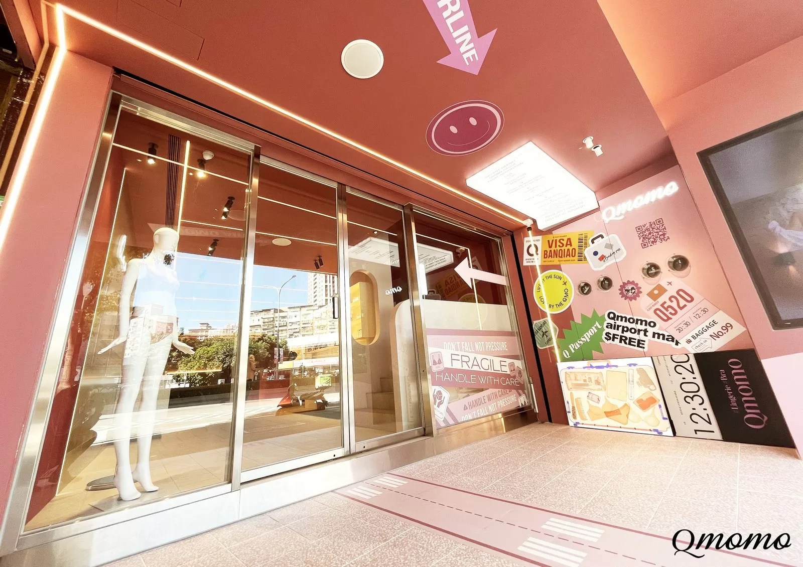 台灣電商第一女性內衣品牌Qmomo,於新北市板橋盛大開幕。以航空主題打造粉紅航空機艙主題門店,該旗艦店擁有三層樓購物分層空間,以寬敞舒適的購物動線,為女性消費者打造沉浸式的購物體驗,提供更多元化的商品及服務。皮粉色的空間色調,搭配象徵航站主題的金屬絲光檯面,讓人一秒感受出國購物的好心情。