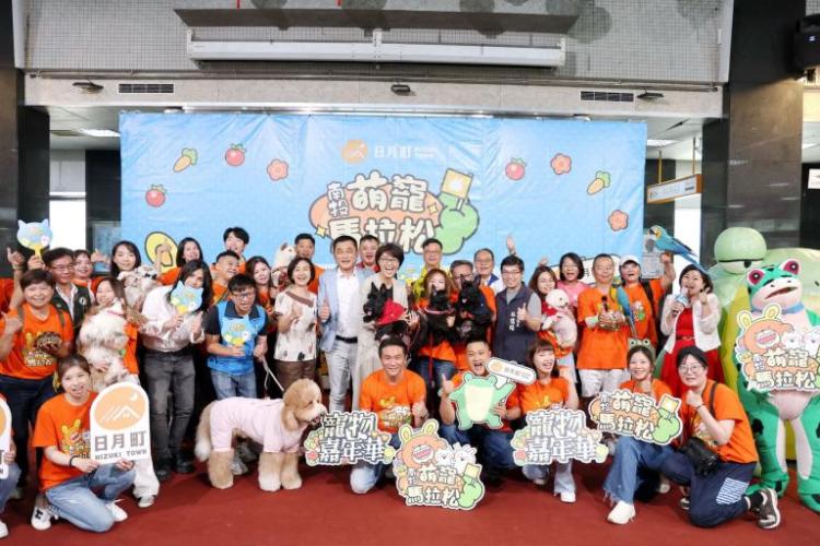 由南投日月町複合式商場主辦的南投首屆「萌寵馬拉松」,22日下午在南投縣政府一樓大廳舉行活動記者會,縣長許淑華、日月町董事長洪乙彥一同宣布活動報名正式開跑,熱情號召毛孩家庭來參加,盡情奔跑,一同感受毛孩與宜居城市的熱情律動。