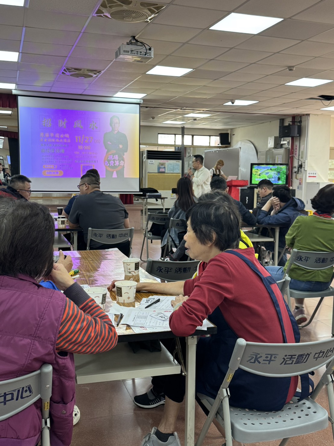這些講座不僅涵蓋防詐騙宣導、居家安全和身心靈培養,還特別邀請了藥局、中醫師,甚至紫微斗數的老師到現場,為長者們提供免費的命理、算命等服務,讓整個活動內容更加豐富多元。