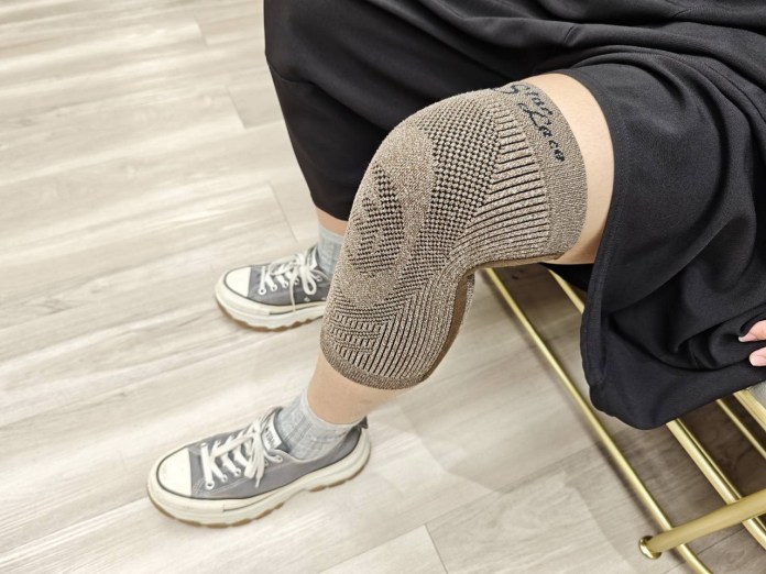 ▲「矽米子遠紅外線護膝」穿戴示範。(圖/業者提供)