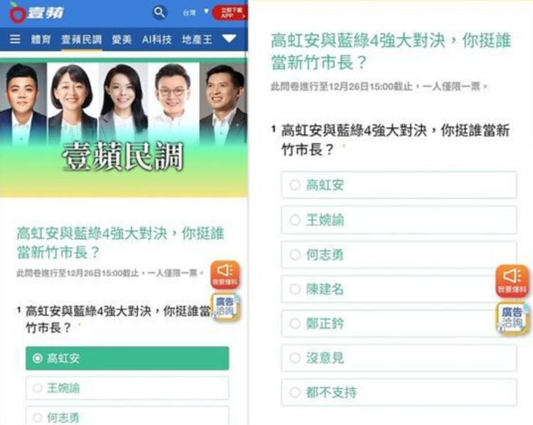距離2026年縣市長選舉還有一年時間,當大多數市民還在為生活奔波、為房貸煩惱時,新竹市長的卡位戰竟然已經在網路上殺紅了眼!就在大家以為網路民調代表著真實的「民意聲量」時,有看不下去的內部知情人士直接踢爆:這場在「壹蘋民調」網站上看似激烈的對決,根本不是什麼民意,而是赤裸裸的「鈔能力」展示,其瘋狂程度已遠超乎常人想像。