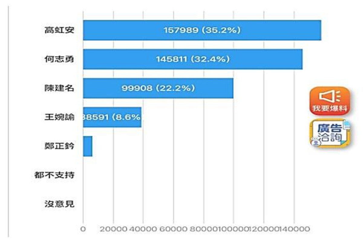 「最新2026新竹市長網路民調!高虹安與何志勇在3% 誤差範圍」
