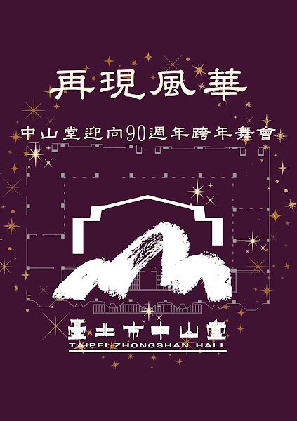 今年跨年舞會,中山堂特別邀請國際舞台文化表演藝術交流協會合作,有中山堂紀念影片,還有舞蹈音樂演出。開場將播放〈再現風華-臺北市中山堂的流金歲月〉90週年紀念影片,此影片專訪了臺北市文化局蔡詩萍局長、中山堂江孟芳主任,簡述中山堂現在與未來規劃,也邀請到關注中山堂發展的文化界人士,包括中山堂修復再利用計畫主持人黃承令建築師、文化資產保存專家孫啟榕建築師、知名指揮家與教育家杜黑、臺灣大學音樂學研究所沈冬教授、與中山堂同歲的臺灣前輩舞蹈家江明珠、舞蹈教育家王廣生教授、國際知名編舞家暨Dance Now Asia策演人何曉玫,以及中山堂民政局主政時期的前主任葉傑生,以他們的角度娓娓道出90年動人的故事。蔡詩萍局長於影片中也提到對中山堂的期許,「未來我們會有臺北市音樂廳,音樂廳重視的是古典音樂,在這個情況下,中山堂會利用(音樂廳建好後)這個時間來做修復,但更重要的是讓它也慢慢可以轉型…祝中山堂生日快樂,繼續往前,邁向100」。