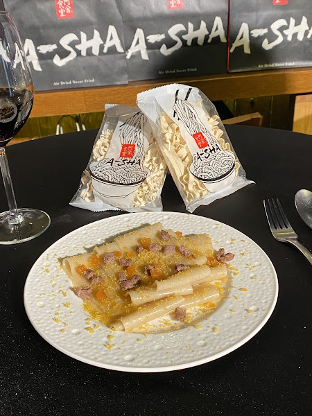 本次合作中,金主廚強調這並非一般的品牌代言,而是他個人對於「健康美味」理念的延伸。他親自操刀研發,從醬料的層次堆疊到麵體的嚼勁比例,希望透過阿舍最具經驗的研發生產實力,讓消費者在家也能吃到完美還原米其林級的健康享受。