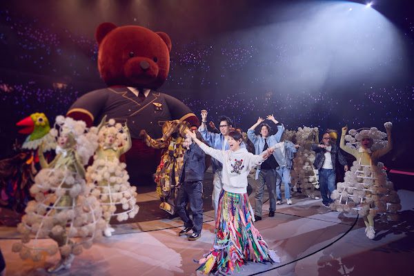 4.將舞臺上的飛天鯨魚、旋轉巨熊、音符紙飛機化作紙花,全場飄灑陪伴飛到大家身邊;