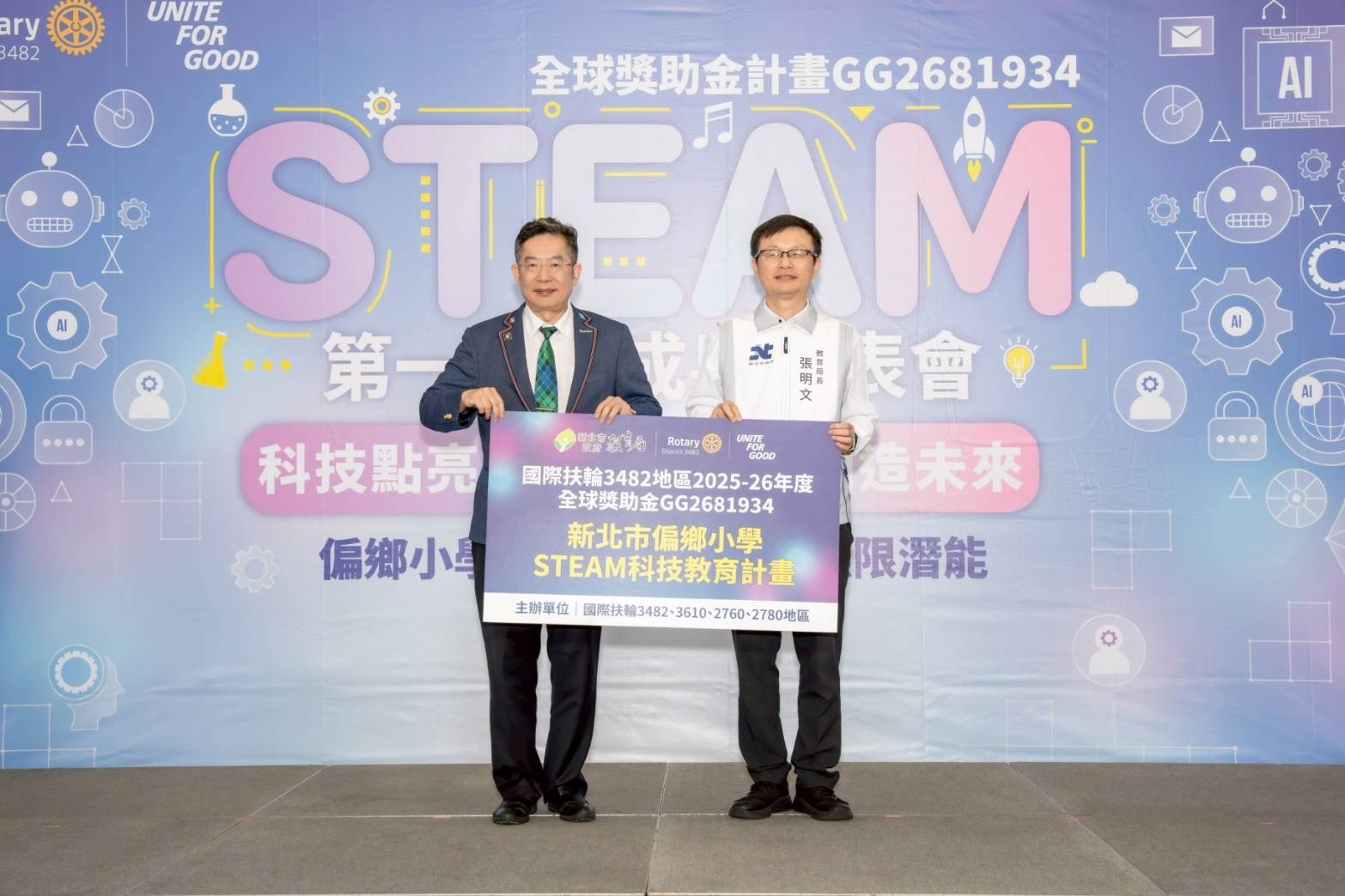 2025年 12月23日,國際扶輪3482地區於臺北市立大安高級工業職業學校舉行了114學年度上學期的成果發表會。此次活動旨在展示並慶祝新北市 12所偏鄉小學在STEAM(科學、科技、工程、藝術和數學)課程上的優異成果,共有來自義方、澳底、菁桐、貢寮、金山、大鵬、野柳、三和、金美、介壽、五寮及民義國小的238位師生參與。各校的師生展示了他們的創作,並設置了互動攤位,吸引了100多位來賓參與其中。